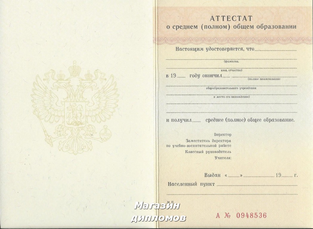 Аттестат Российской Федерации за 11 классов, выдавался с 1998 года по 2006 год.