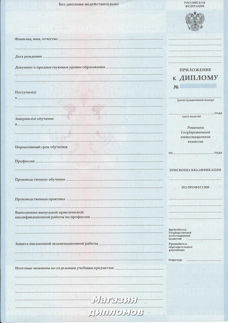 Диплом ПТУ Российской Федерации. Выдавался с 1993 года по 2006 год.